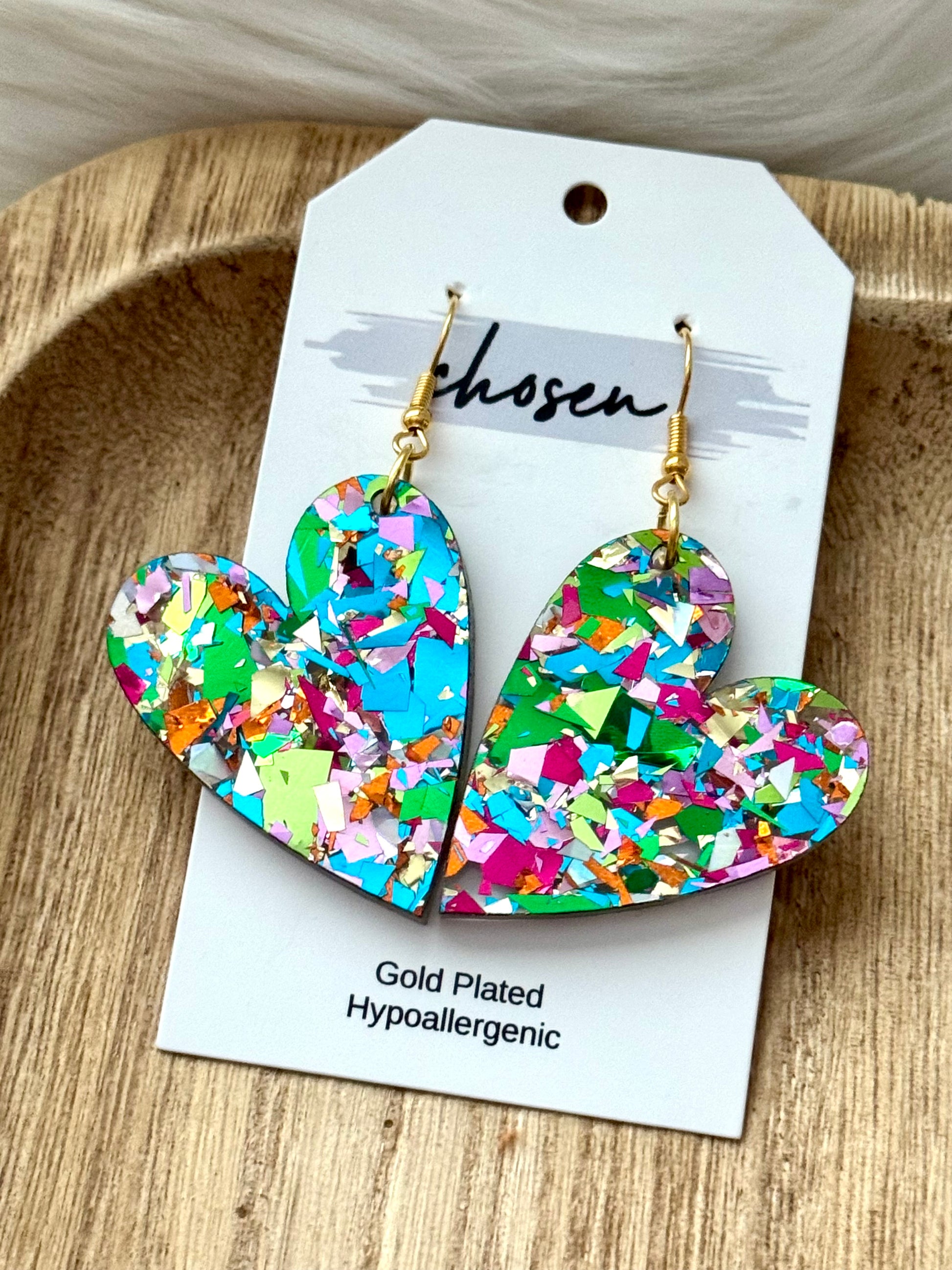 Happy Heart Multi Glitter Earrings